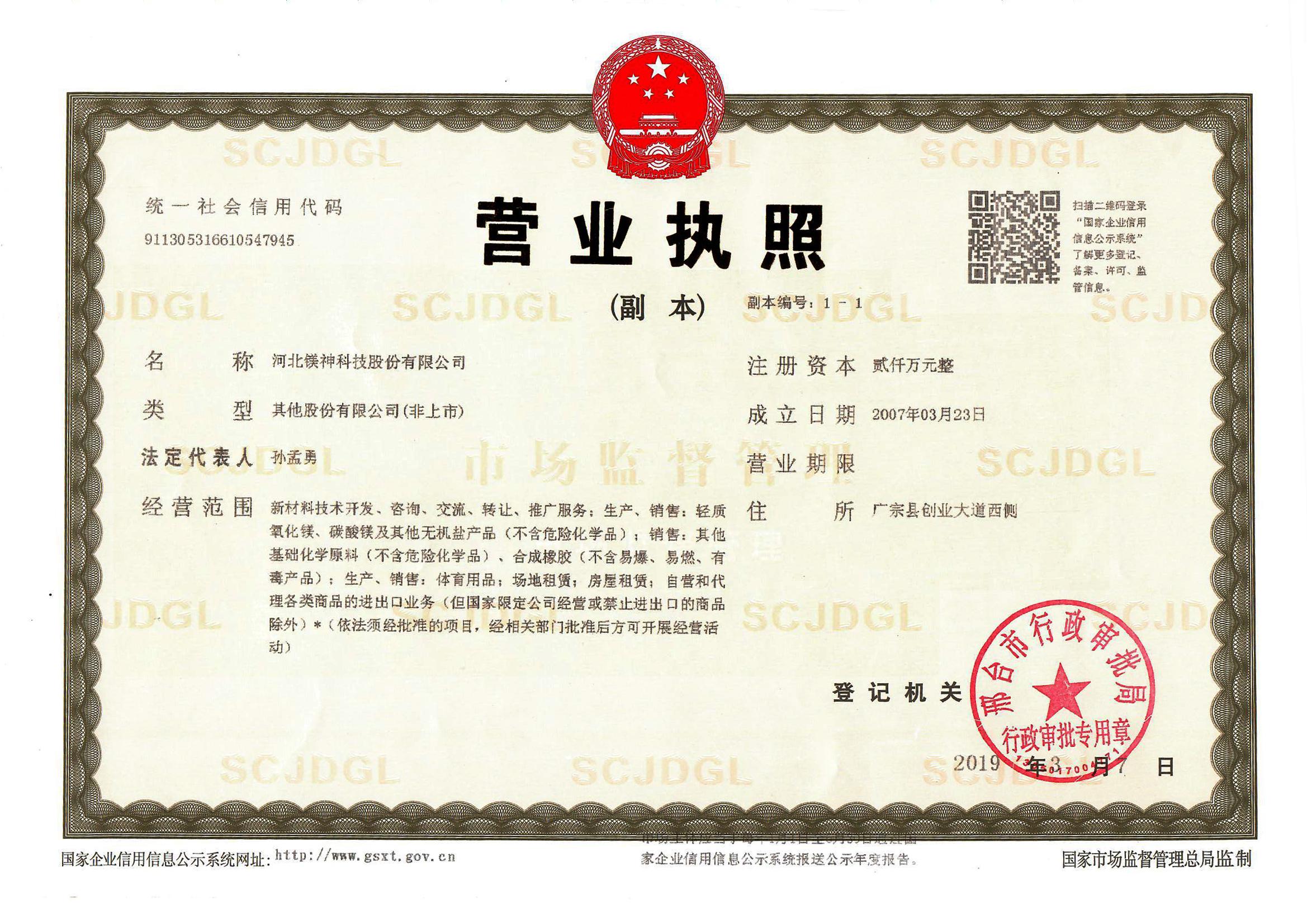 河北鎂神科技股份有限公司,其前身為一家中外合資企業,已有30余年的建廠歷史,是國內過萬噸級別的,專業生產氧化鎂、碳酸鎂、硫酸鎂、氫氧化鎂的生產廠家。 [了解詳情]