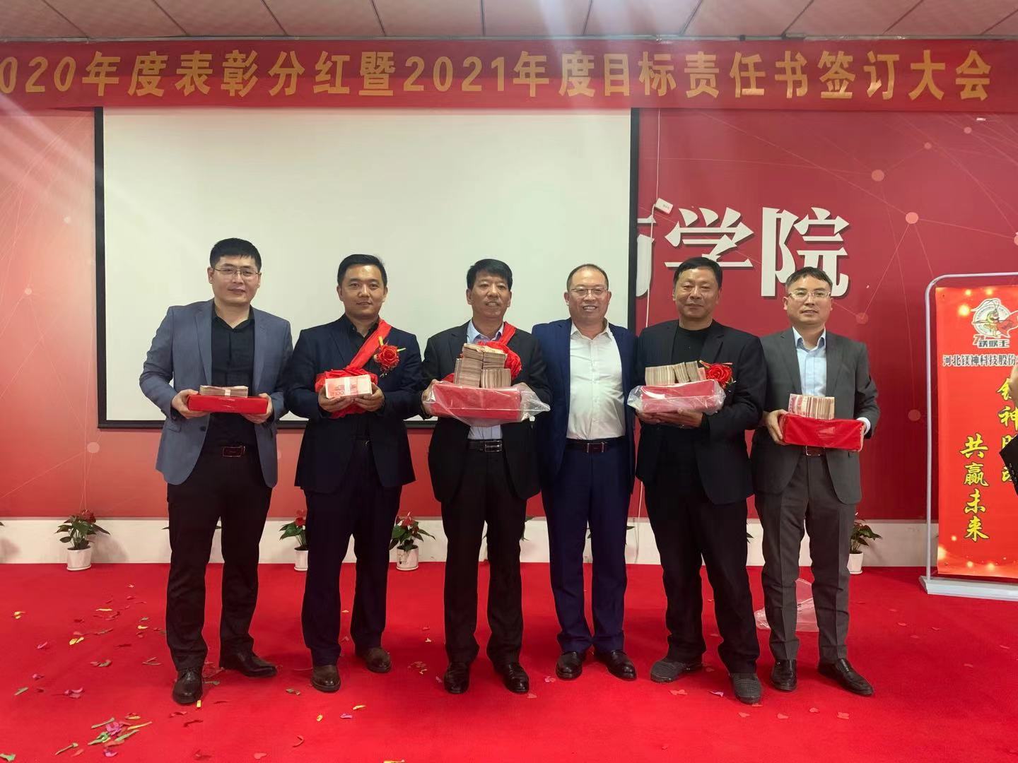 2021年3月31日,氧化鎂生產(chǎn)商-河北鎂神科技股份有限公司一年一度的表彰分紅暨2021年度目標(biāo)責(zé)任書簽訂大會(huì),在廣宗鎂神商學(xué)院隆重舉行。